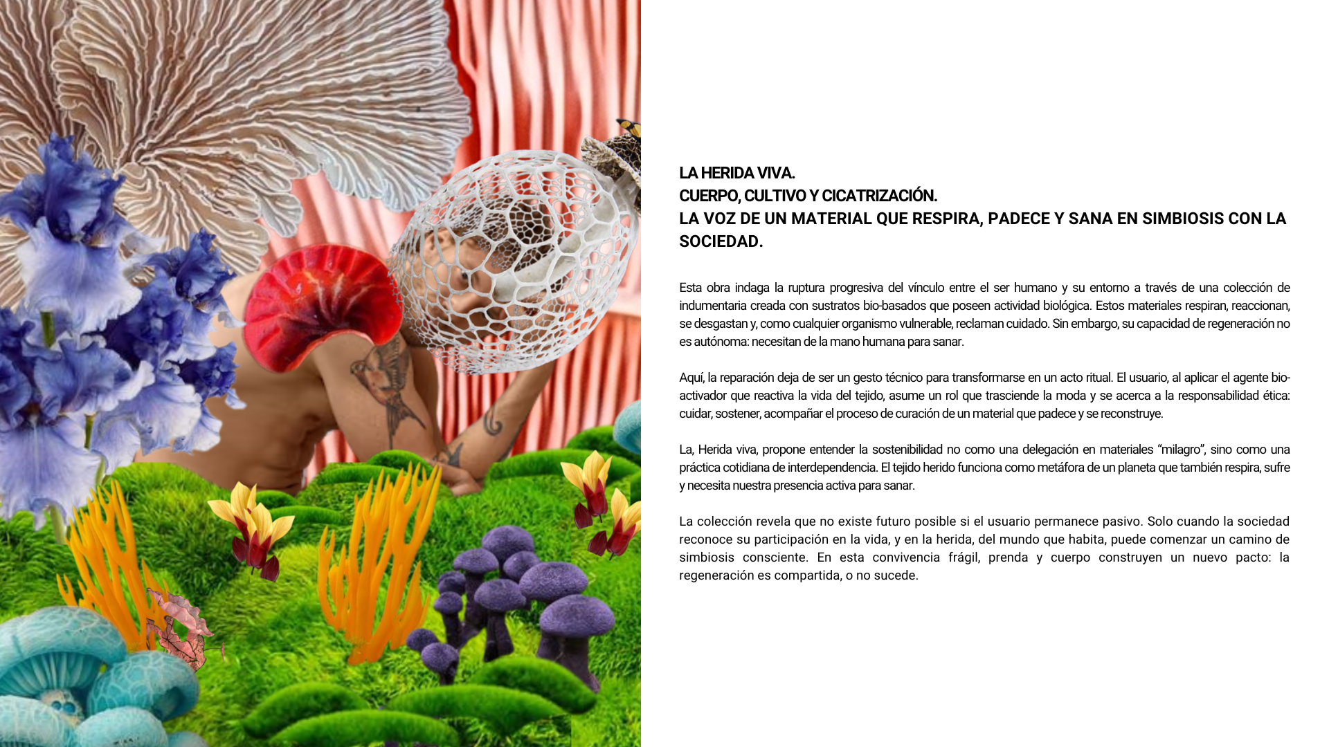 Cuerpo, cultivo y cicatrización. La voz de un material que respira, padece y sana en simbiosis con la sociedad.